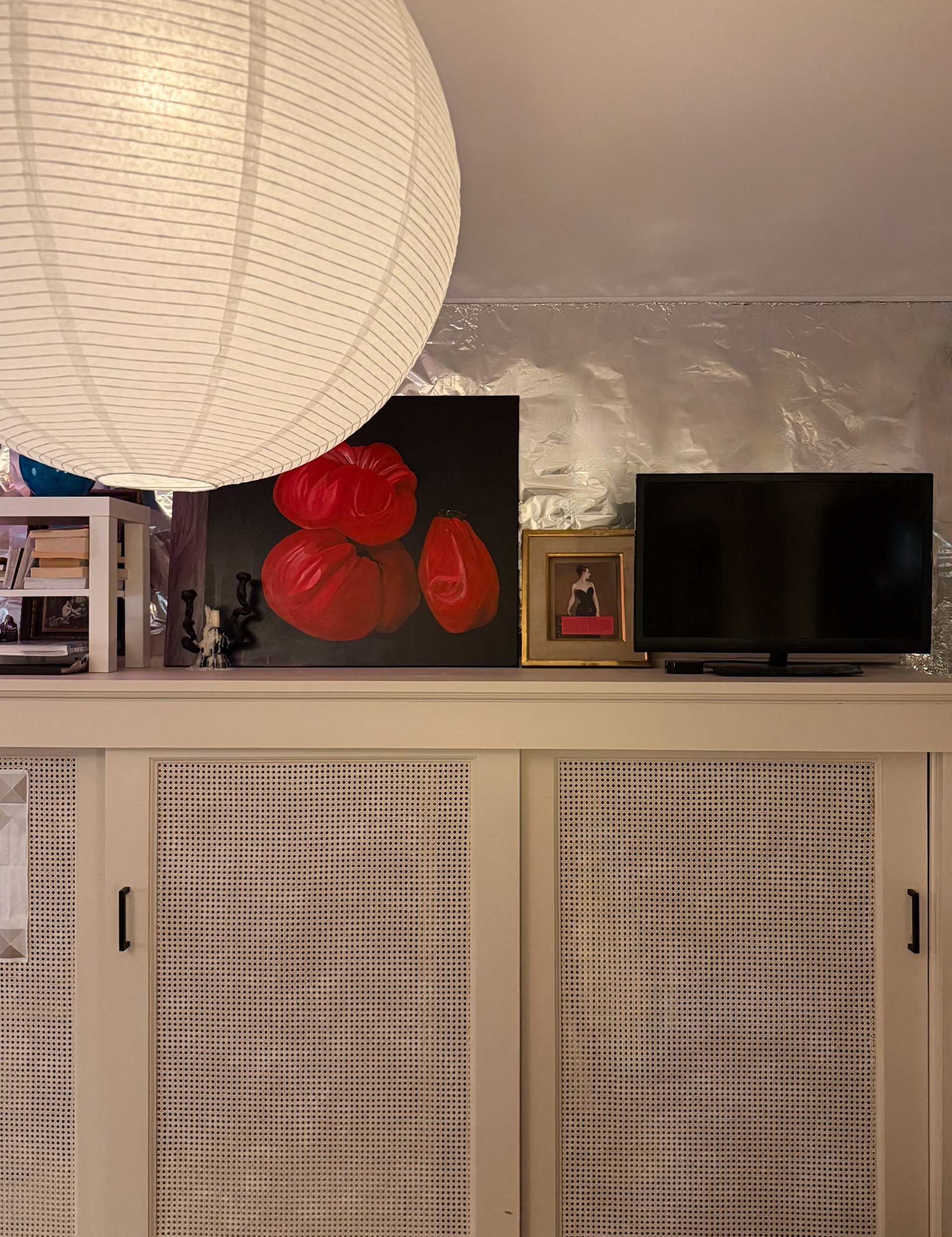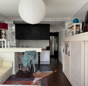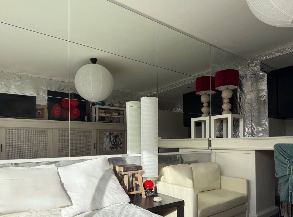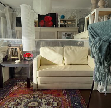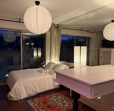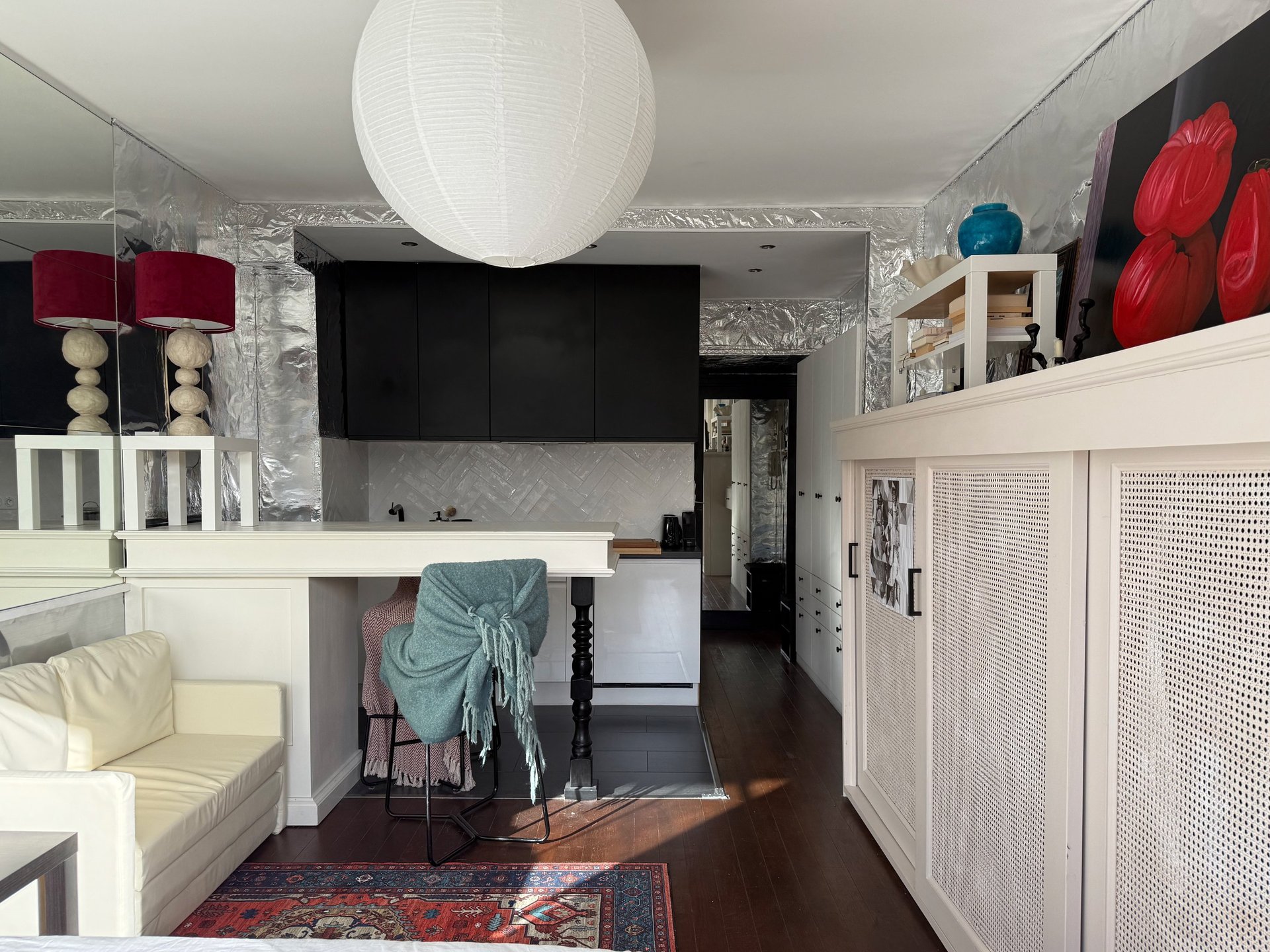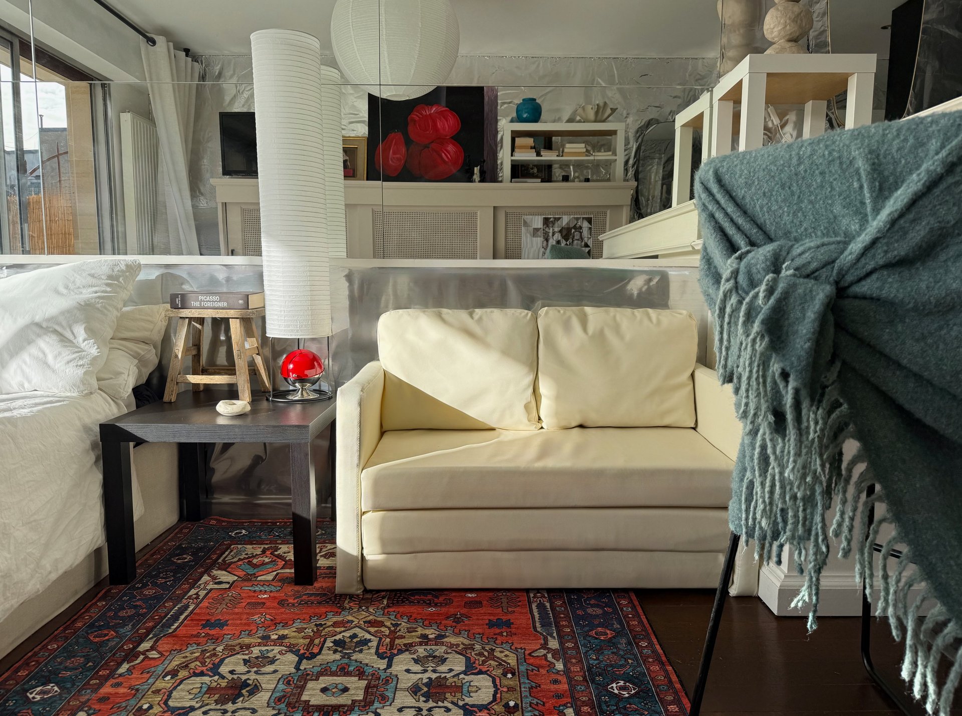 L A Y E R E D P O R T A B L E L A M P S , R E F L E C T I V E T E X T U R E S , A N D C O N T R O L L E D S H A D O W S B U I L D D E P T H A N D A T M O S P H E R E I N A S T U D I O T H A T F E E L S L A R G E R T H A N I T S F O O T P R I N T , T U R N I N G L I M I T A T I O N S I N T O D E L I B E R A T E S P A T I A L D R A M A . R U G S , T H R O W S , C U R A T E D D E C O R P I E C E S , A N D W A L L T E X T U R E S A D D W A R M T H , B R I N G P E R S O N A L I T Y , A N D D E F I N E Z O N E S F O R L I V I N G , W O R K I N G , A N D S L E E P I N G .